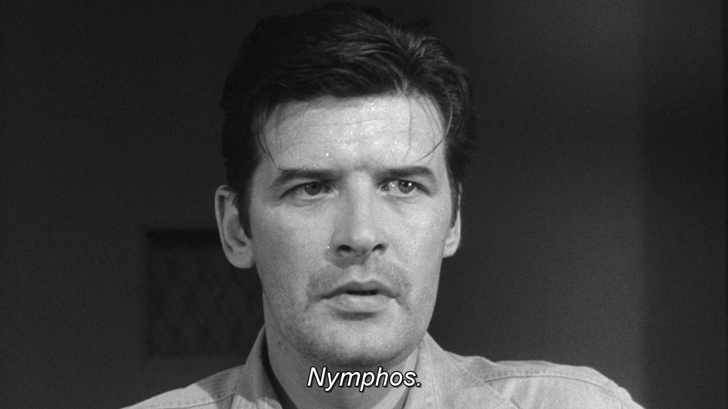 An Icarus myth for the post-Freudian era, Shock Corridor follows Johnny (Peter Breck), a ruthless journalist who goes undercover at a psych ward to solve a murder and write a Pulitzer-winning article, but suffers damage to his own mind in the process.  The murder mystery plays out with all the complexity of a videogame fetch quest, but the the film has cult status due to its evocative exploration of the protagonist’s downfall.  Exploitation excitement is applied liberally, including how the plot kicks off:  Johnny gains admittance to the mental hospital by pretending that he has an overwhelming sexual attraction to his sister– played by his exotic dancer girlfriend Carol (Constance Towers)– which manifests in part as a fetish for long hair.